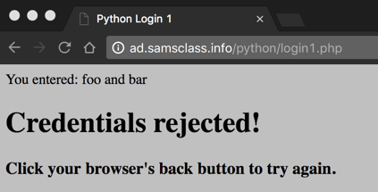 Your credentials are rejected, as shown below.