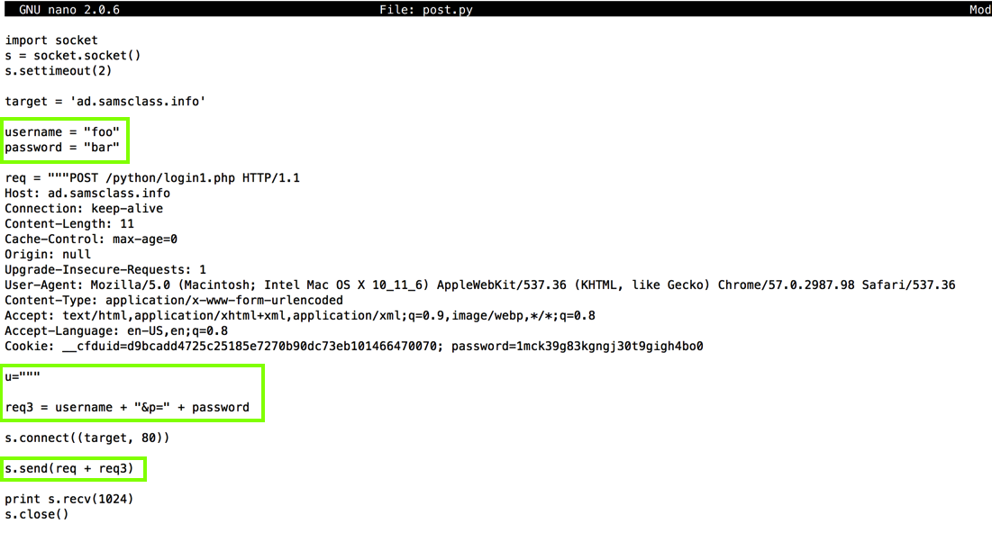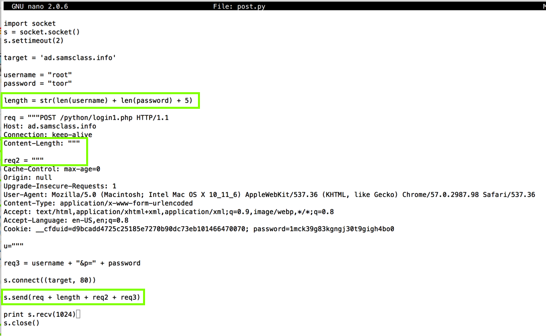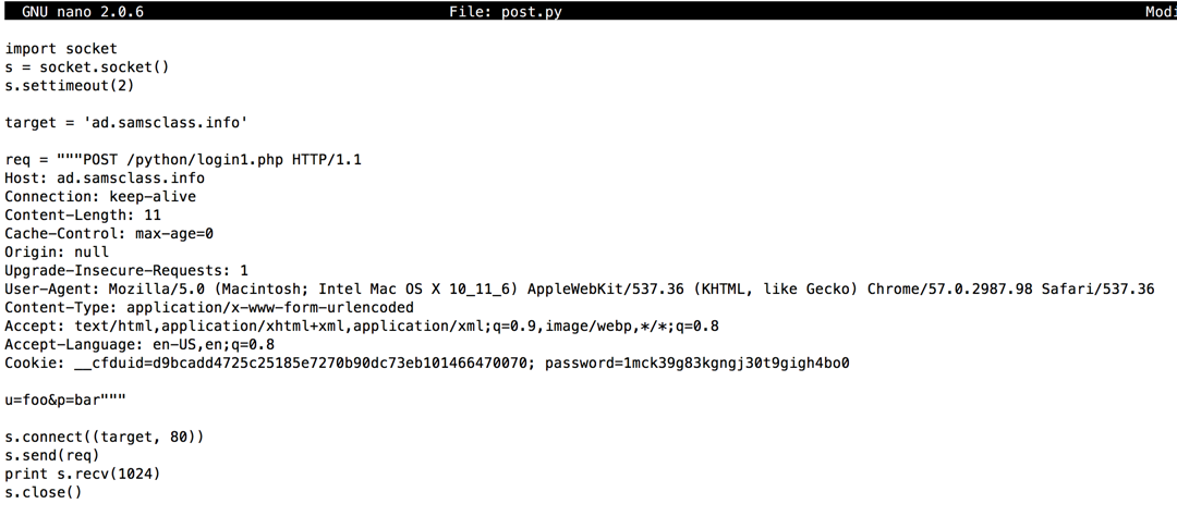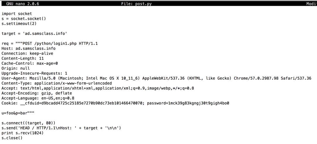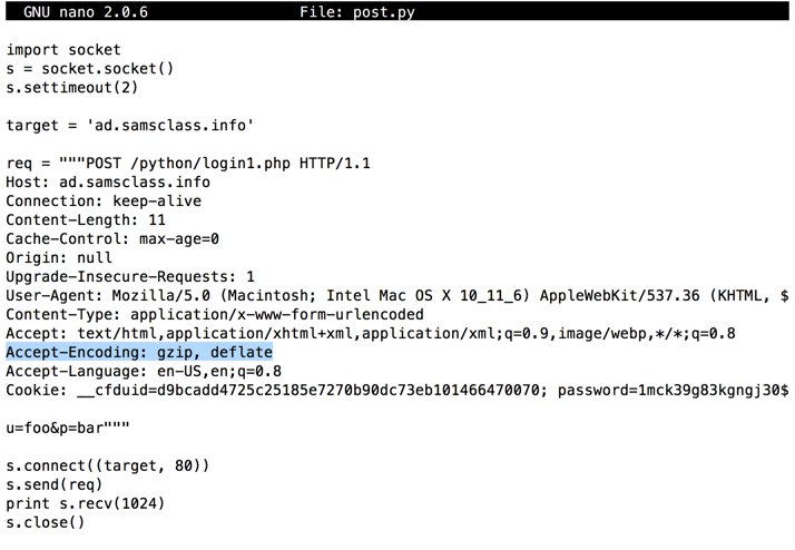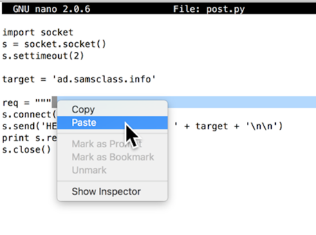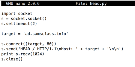 s.send('HEAD / HTTP/1.1\nHost: ' + target + '\n\n')