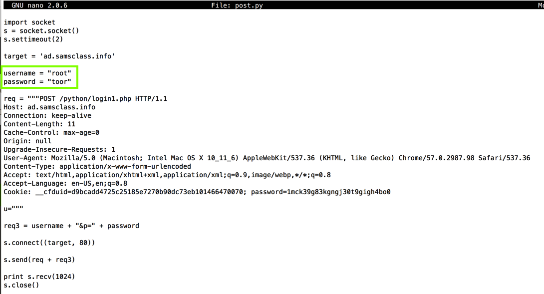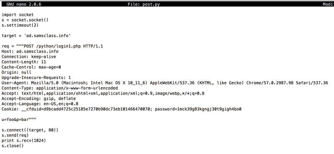 In nano, save the "post.py" file.