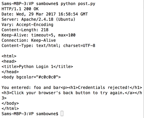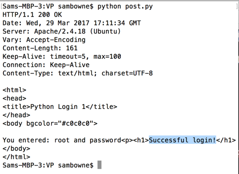 Run that script to get a "Successful Login" message, as shown below.