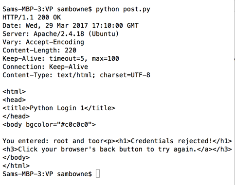 In the Terminal window, execute this command to run the post.py program.