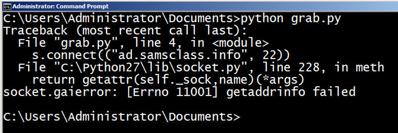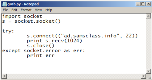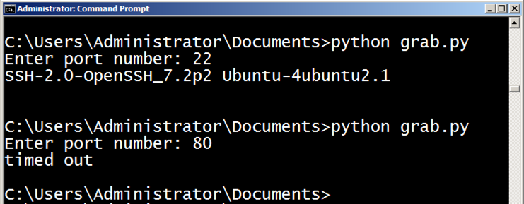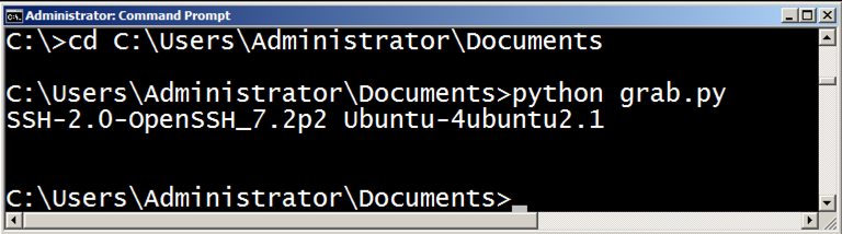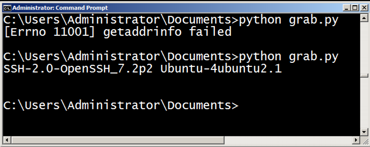 Connect your computer to the Internet and run "grab.py" again. You should see the SSH banner, as shown above.
