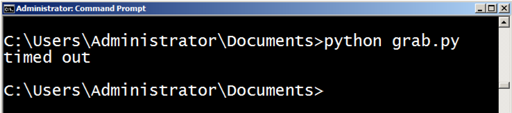 Run the program again, but this time enter 80. The program times out, as shown below.