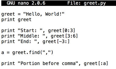print "Portion before comma", greet[:a]