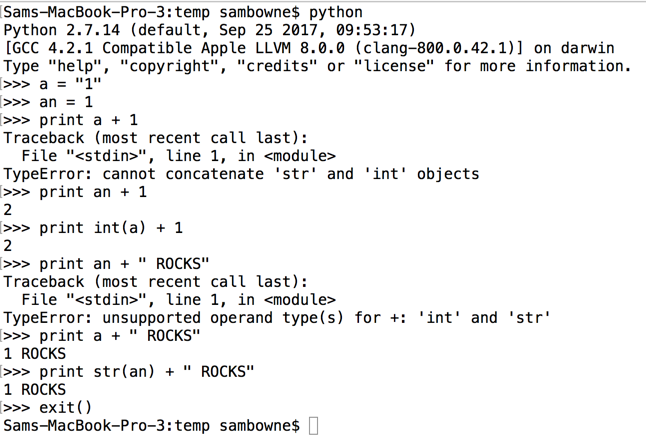 Integers and strings are different data types in Python.You can convert items back and forth with the int() and str() functions, as shown below.