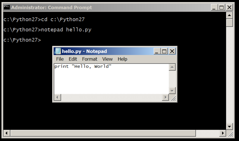 In Notepad, click File, Save to save the file. Running the Python ProgramIn the Command Prompt, execute this command, as shown below.