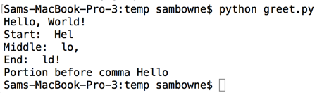 Examine the output to make sure you understand how to cut out portions of a string, and how to find substrings within a string,
