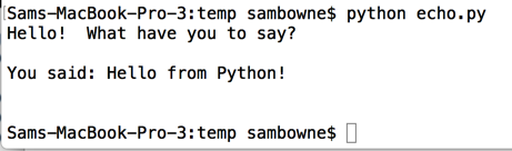 Run the program, as shown below. It sends the string "Hello from Python!" to the server, which echoes it back.