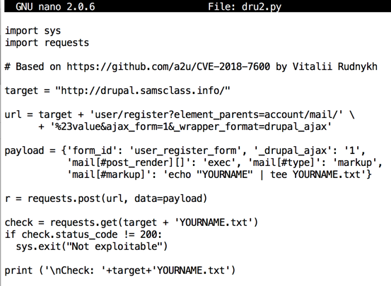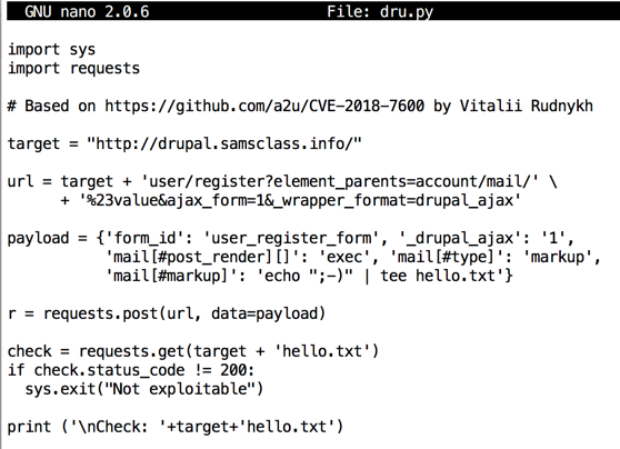 # Based on https://github.com/a2u/CVE-2018-7600 by Vitalii Rudnykh