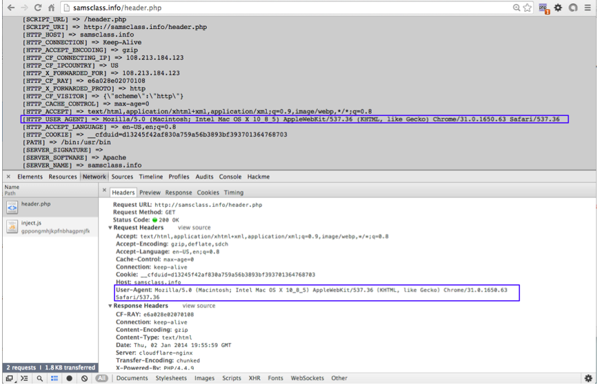 You should see a HTTP_USER_AGENT of YOUR NAME, as shown below.