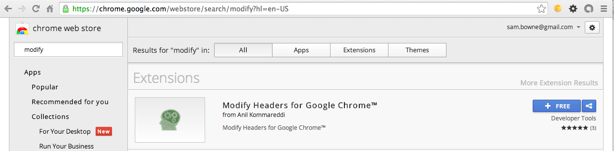 In the "Modify Headers for Google Chrome" section, click the blue "+ FREE" button.