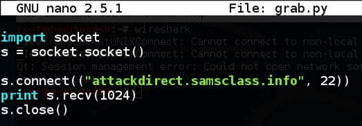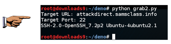Now the port scanner works. Use it to grab the port 22 banner again, as shown below.