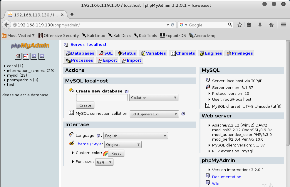 phpMyAdmin is another convenience incuded in XAMPP, which provides a GUI for MySQL server administration.