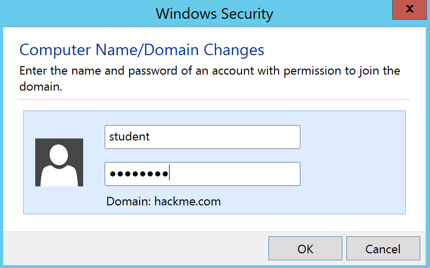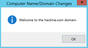 A box pops up saying "Welcome to the hackme.com domain", as shown below. Click OK.