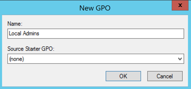 In the "New GPO" box, enter a Name of "Local Admins", as shown below. Click OK.