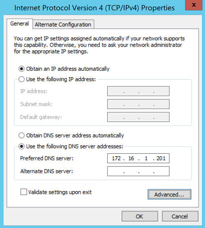 In the Internet Protocol Version 4 (TCP/IPv4) Properties window, in the lower section, click the "Use the following DNS server addresses" button.