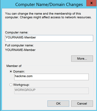 In the "Computer Name/Domain Changes" box, make these adjustments, as shown below: