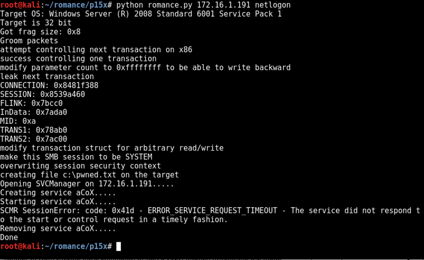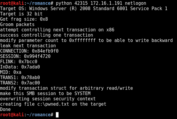 On Kali, in a Terminal window, execute this command to exploit the target, replacing the IP address with the IP address of your Windows target: