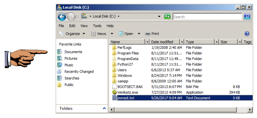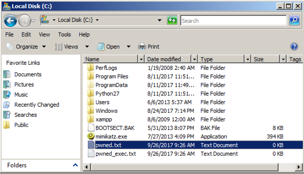 Open drive C:. The pwned_exec file should be visible, as shown below.