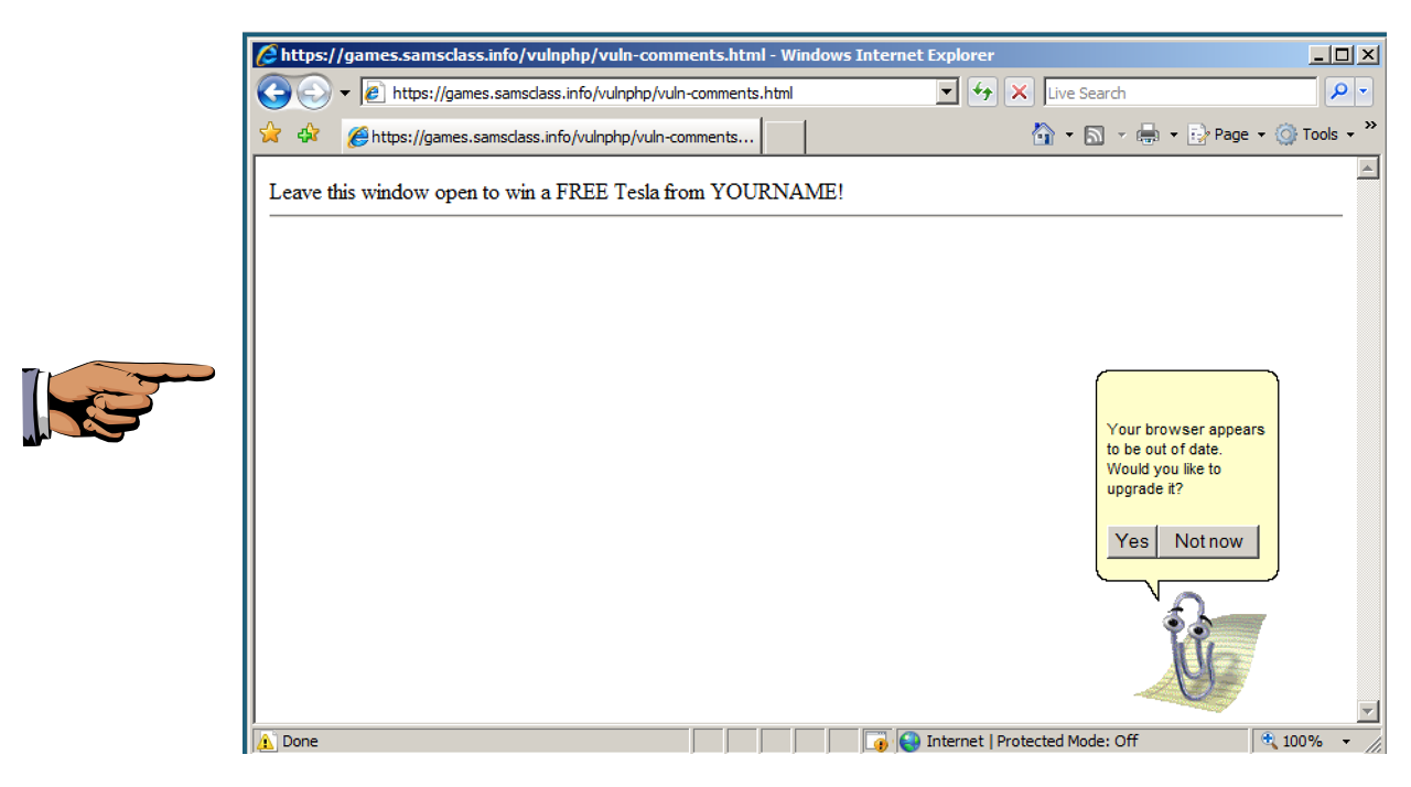 In your Windows 2008 machine, in Internet Explorer, Clippy appears, prompting you to download a file, as shown below. Clippy will continue to remind you every 5 seconds until you do it.