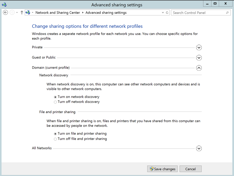 In the "Domain (current profile)" section, turn on these options, as shown below: