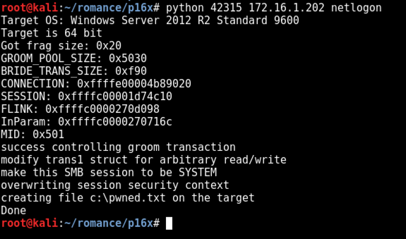 On Kali, in a Terminal window, execute this command to exploit the target, replacing the IP address with the IP address of your Windows target:
