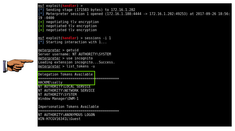 Execute these commands to interact with the shell and see who you are: you are SYSTEM, as shown below.