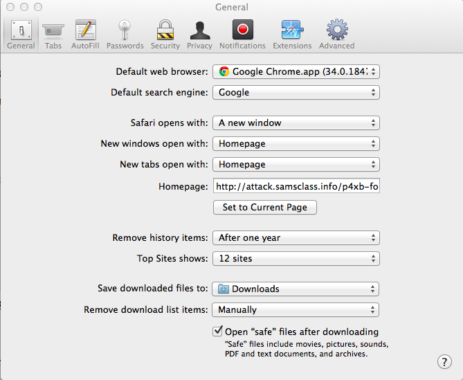 # 2. Set Safari home page to http://attack.samsclass.info/p4xb-form.htm