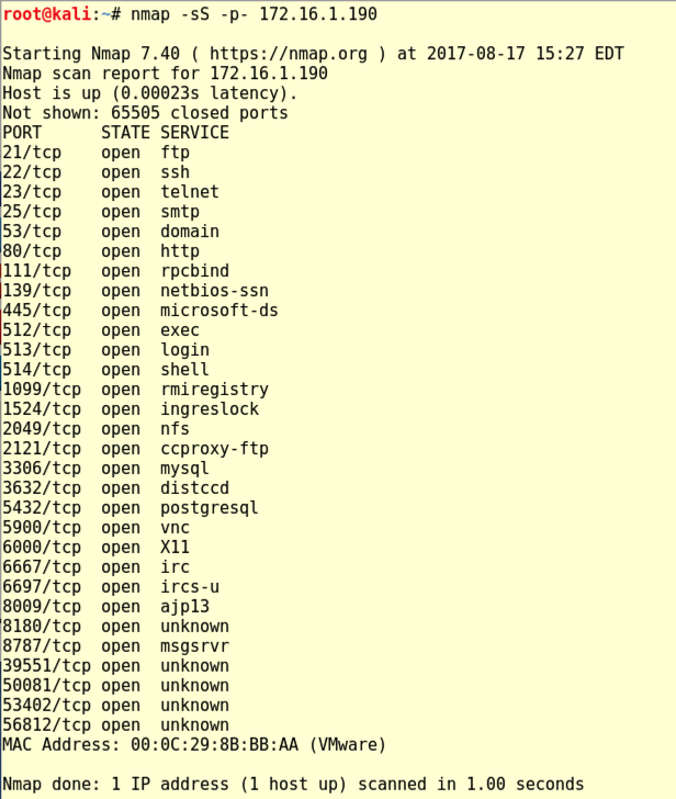 nmap -sS -p- 172.16.1.190