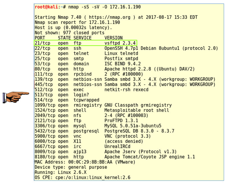 nmap -sS -sV -O 172.16.1.190