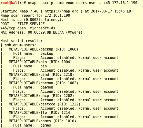 nmap --script smb-enum-users.nse -p 445 172.16.1.190