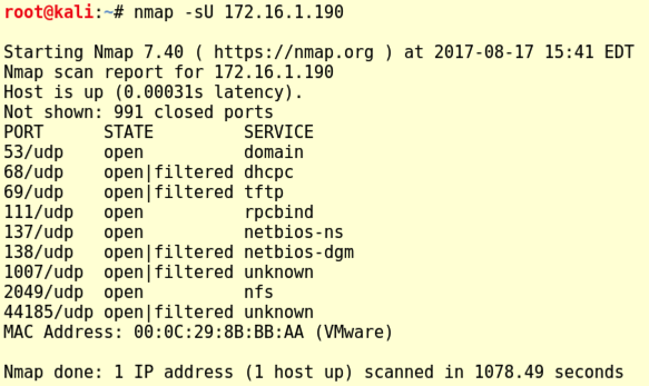 nmap -sU 172.16.1.190