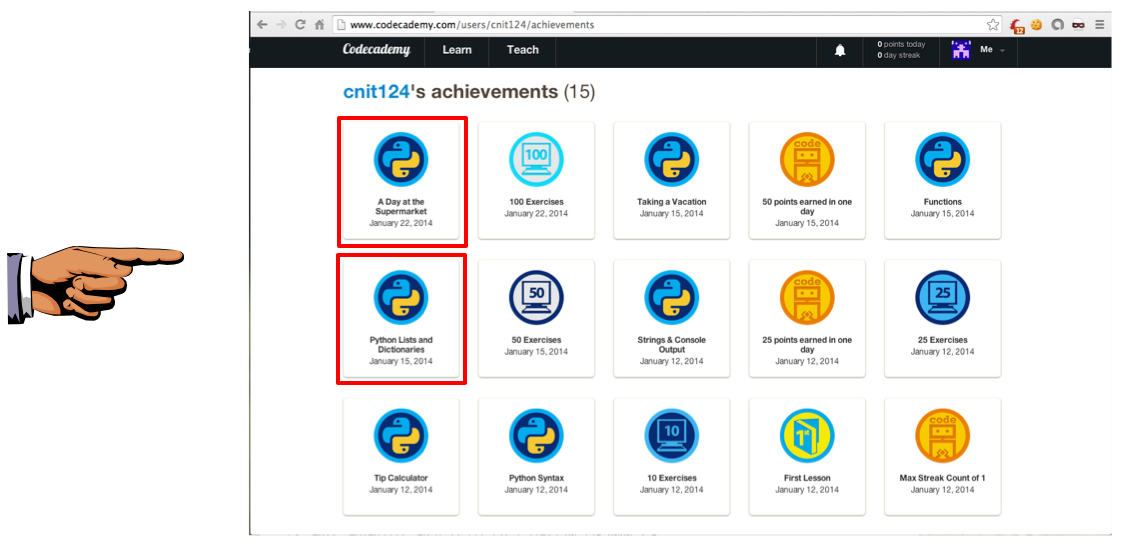 Your screen should show the two badges listed above, as highlighted in the image below.