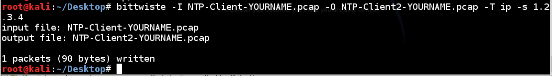 bittwiste -I NTP-Client-YOURNAME.pcap -O NTP-Client2-YOURNAME.pcap -T ip -s 1.2.3.4