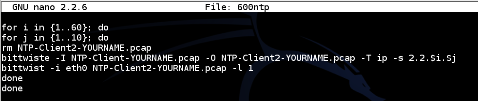bittwiste -I NTP-Client-YOURNAME.pcap -O NTP-Client2-YOURNAME.pcap -T ip -s 2.2.$i.$j