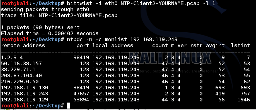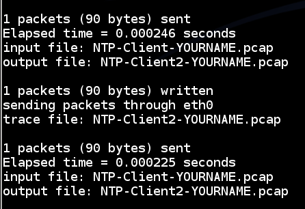 bittwist -i eth0 NTP-Client2-YOURNAME.pcap -l 1