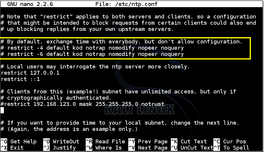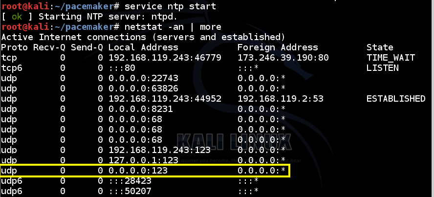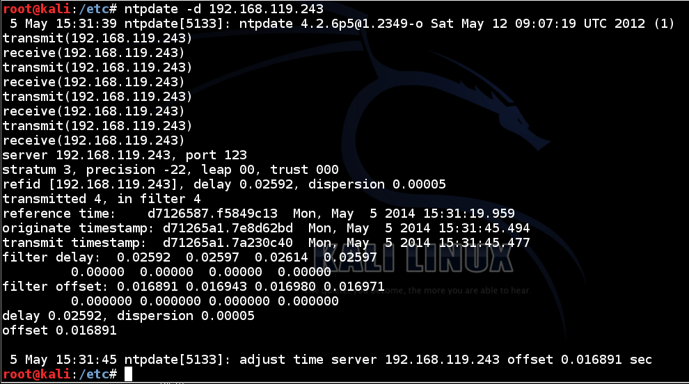 On your Kali Linux NTP Server, in a Terminal window, and execute these commands: