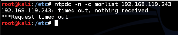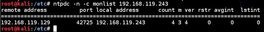 On your Kali Linux Attacker machine, open a new Terminal window and execute this command, replacing the IP address with the IP address of your Kali NTP server: