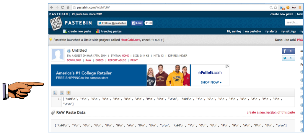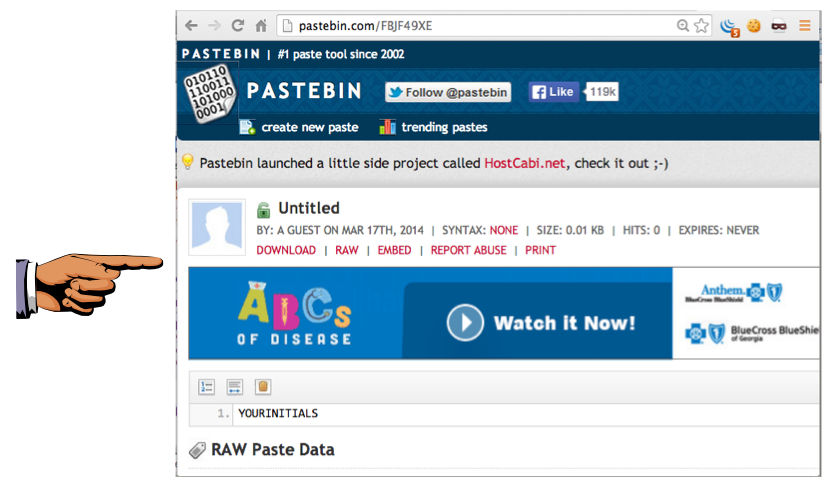 Write a Python script that will post your initials on Pastebin. I recommend using your initials rather than your whole name because I don't know any way to delete the text once it gets posted this way.
