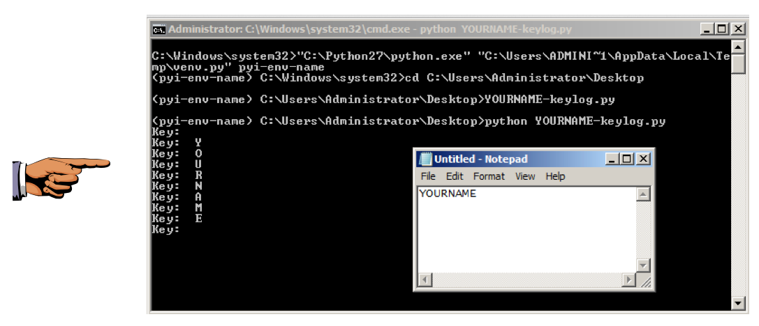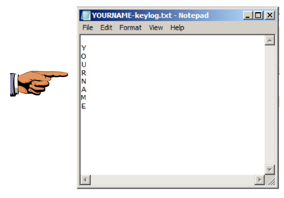 Double-click the YOURNAME-keylog.txt file. Your name should be visible, as shown below.