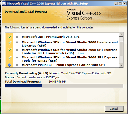 If you see a message saying 'You must use "Turn Windows features on or off" in the Control Panel to install or configure Microsoft .NET Framework 3.5 SP1.", click OK. Continue and exit the Visual Studio C++ Express installer. It will say it failed.Click Start, "Control Panel".