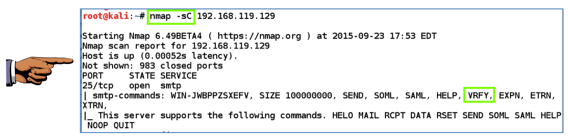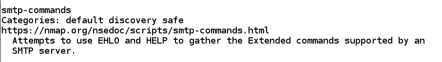 Scroll back many pages to see the smtp-commands script description, as shown below.