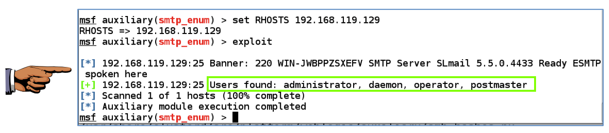 Execute these commands to enumerate the user accounts on the system via SMB (Microsoft's File and Printer Sharing).
