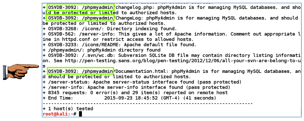 Nikto is a web application vulnerability scanner. Execute this command, replacing the IP address with the IP address of your Windows 2008 machine.