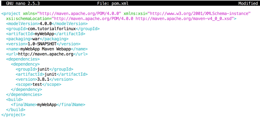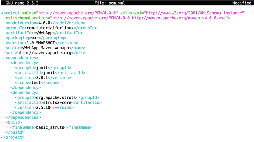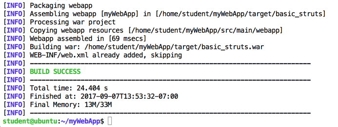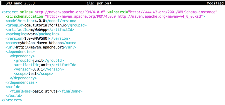 At the bottom of the file, in the "build" section, change myWebApp to basic_struts, so it is as shown below:
