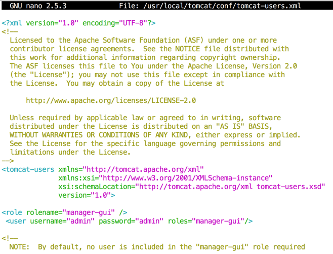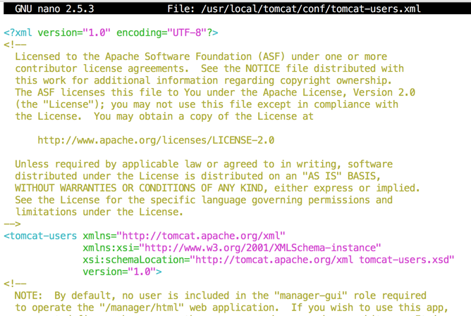 sudo nano $CATALINA_HOME/conf/tomcat-users.xml