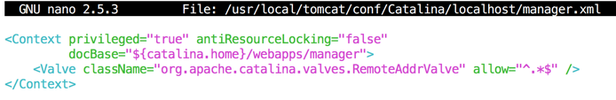 sudo nano $CATALINA_HOME/conf/Catalina/localhost/manager.xml