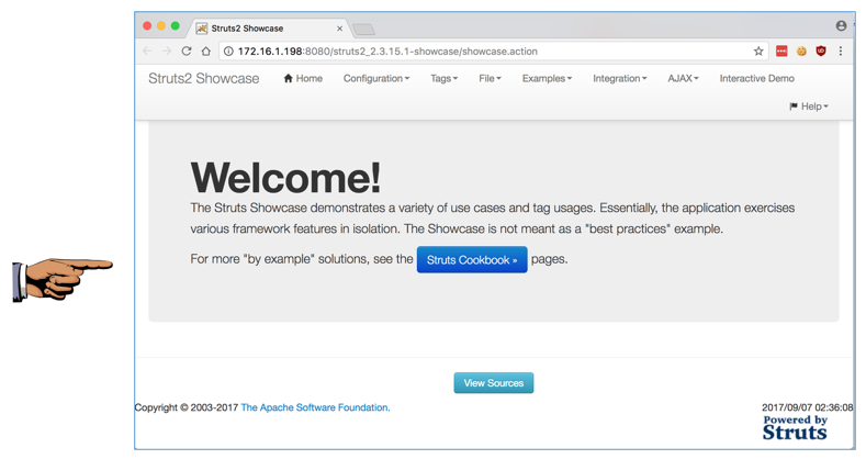 Navigate to your Downloads folder and double-click the struts2_2.3.15.1-showcase.war file.